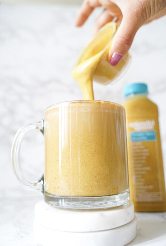 - Pour heated Pumpkin Spice Smoothie "creamer" on top!