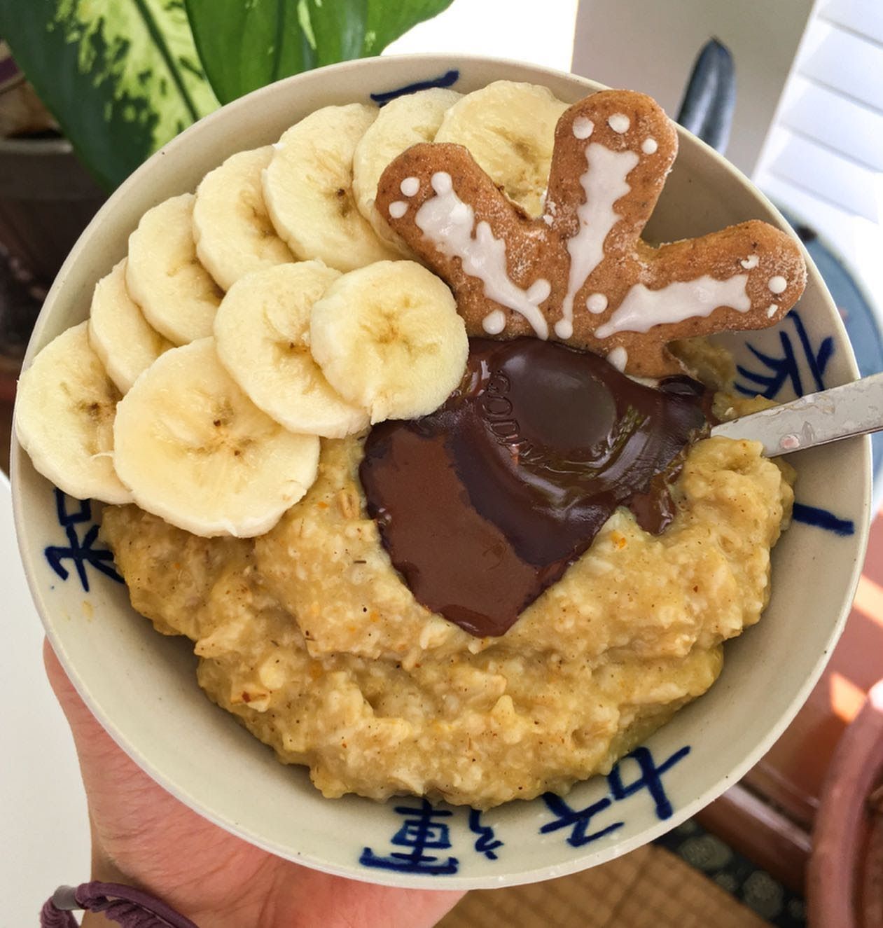 - Top with sliced banana, gingerbread cookie, and dark chocolate ganache, or your favorite toppings!