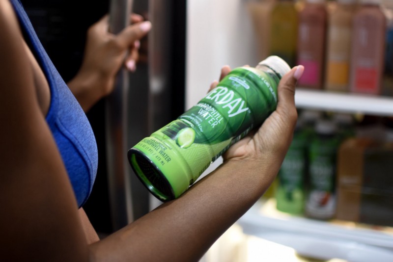 BG: That’s easy! Vita Coco Coconut Water (my favorites are the mango and lemonade flavors), frozen fruits for my green smoothie obsession, Verday Chlorophyll Water, peaches, and once a month I reset with some of my favorite smoothies and soups from Splendid Spoon.