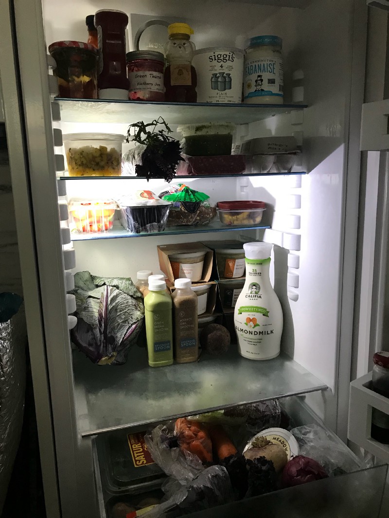 Fridge Voyeur is a virtual visit into the chill zone of the Spoon Crew — our team, our friends, and some of your favorite wellness gurus. We may eat a lot of plants, but you better believe there’s a whole lot of variety, and a little bit of naughty, going on behind closed doors. We know you want a peek ;).