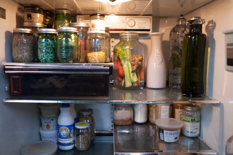 Fridge Voyeur is a virtual visit into the chill zone of the Spoon Crew — our team, our friends, and some of your favorite wellness gurus. We may eat a lot of soup and stews, but you better believe there’s a whole lot of variety, and a little bit of naughty, going on behind closed doors. We know you want a peek ;)