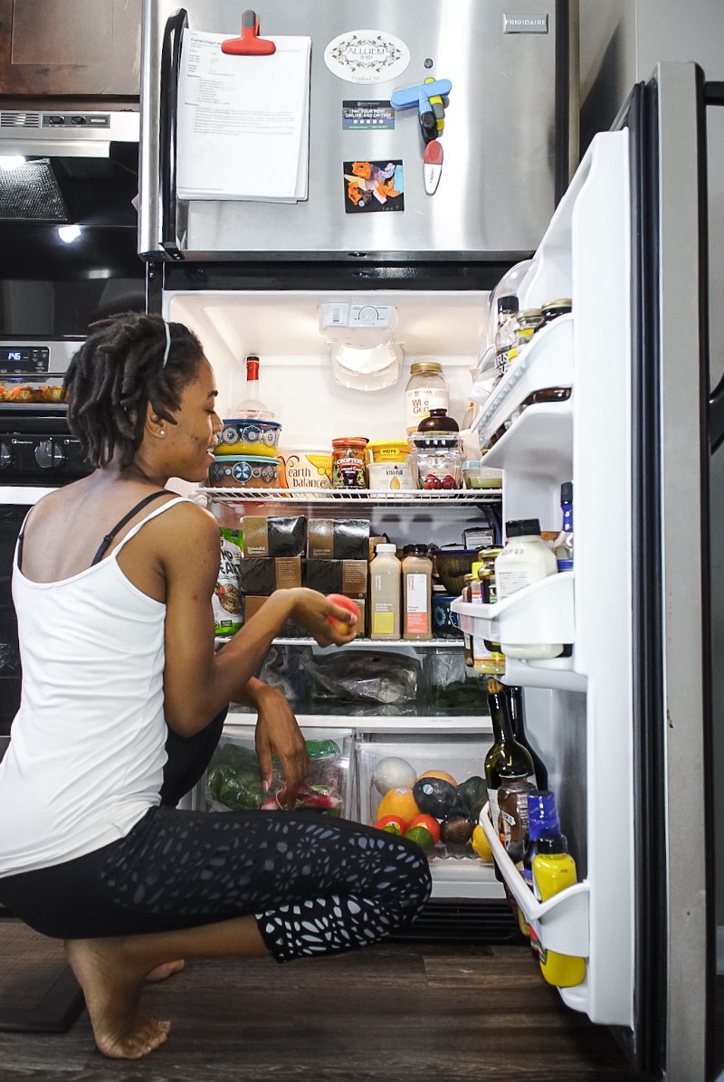 Fridge Voyeur is a virtual visit into the chill zone of the Spoon Crew — our team, our friends, and some of your favorite wellness gurus. We may eat a lot of plants, but you better believe there’s a whole lot of variety, and a bit of naughty, going on behind closed doors. We know you want a peek ;).