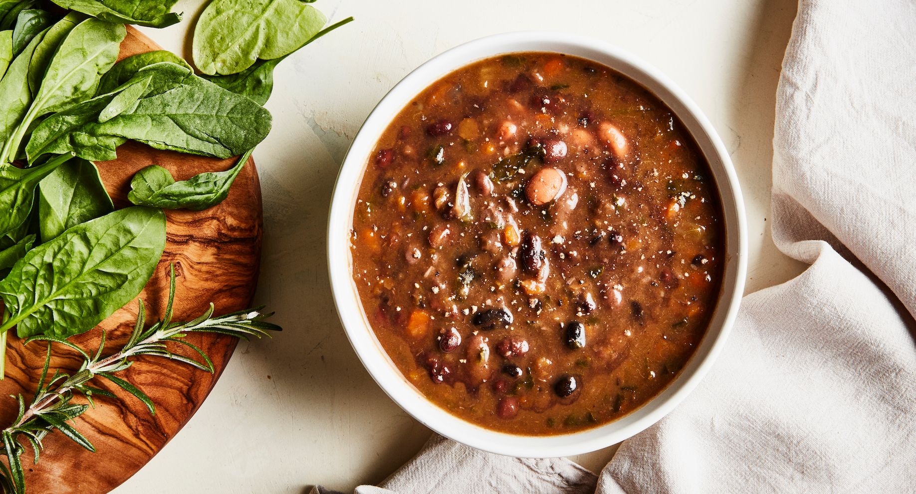- Warm Beans and Greens soup in a soup pot over medium heat until simmering.