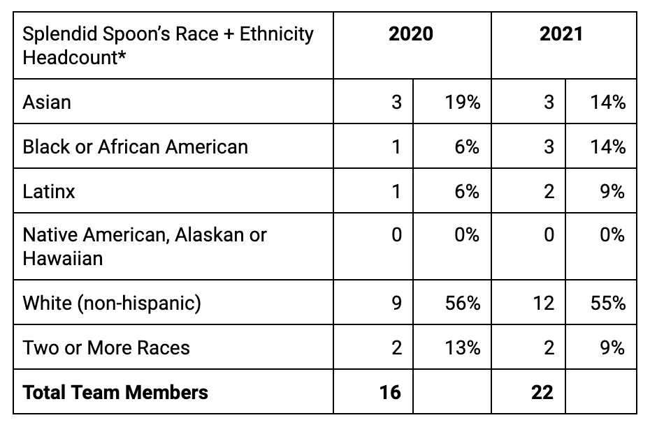 Because our work was catalyzed by George Floyd's murder, we began by focusing energy on the Black community; however, our commitments over the past year have evolved to more formally consider food and social justice for all marginalized communities. Our anti-racism work starts within the walls of the organization — in how we hire and operate our business — and extends through our communication and product development. The goal is for every person to feel at home with Splendid Spoon regardless of race, color, religion, or gender identity.This is hard and beautiful work -- the varied experiences and voices who have joined the Splendid Family as customers and team members over the years make us who we are. Naming our anti-racism commitments is simply doing our part to be in a healthy relationship with you, our valued community.