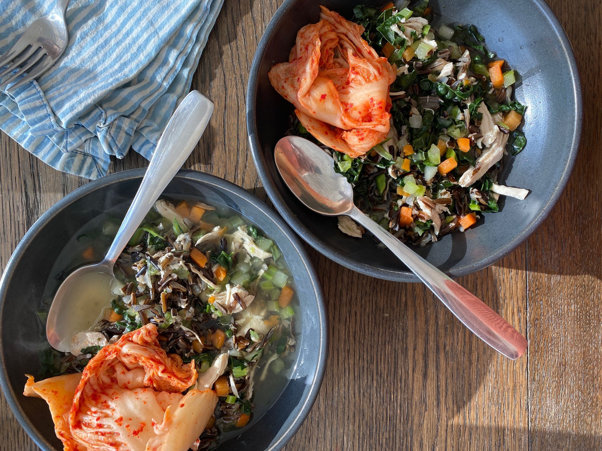 Here are some of my favorite, super easy meal hacks that stretch a Splendid Spoon meal into at least 2 (in most cases I get 4 meals out of these recipes, but it depends on the appetite of your family), and all have passed the test of three generations of hungry family members: my husband, my kids, and my parents! Most of these have animal proteins because everyone in my family is omnivore, but you can easily swap the animal proteins for things like marinated tofu, seared tempeh or a favorite veggie burger.