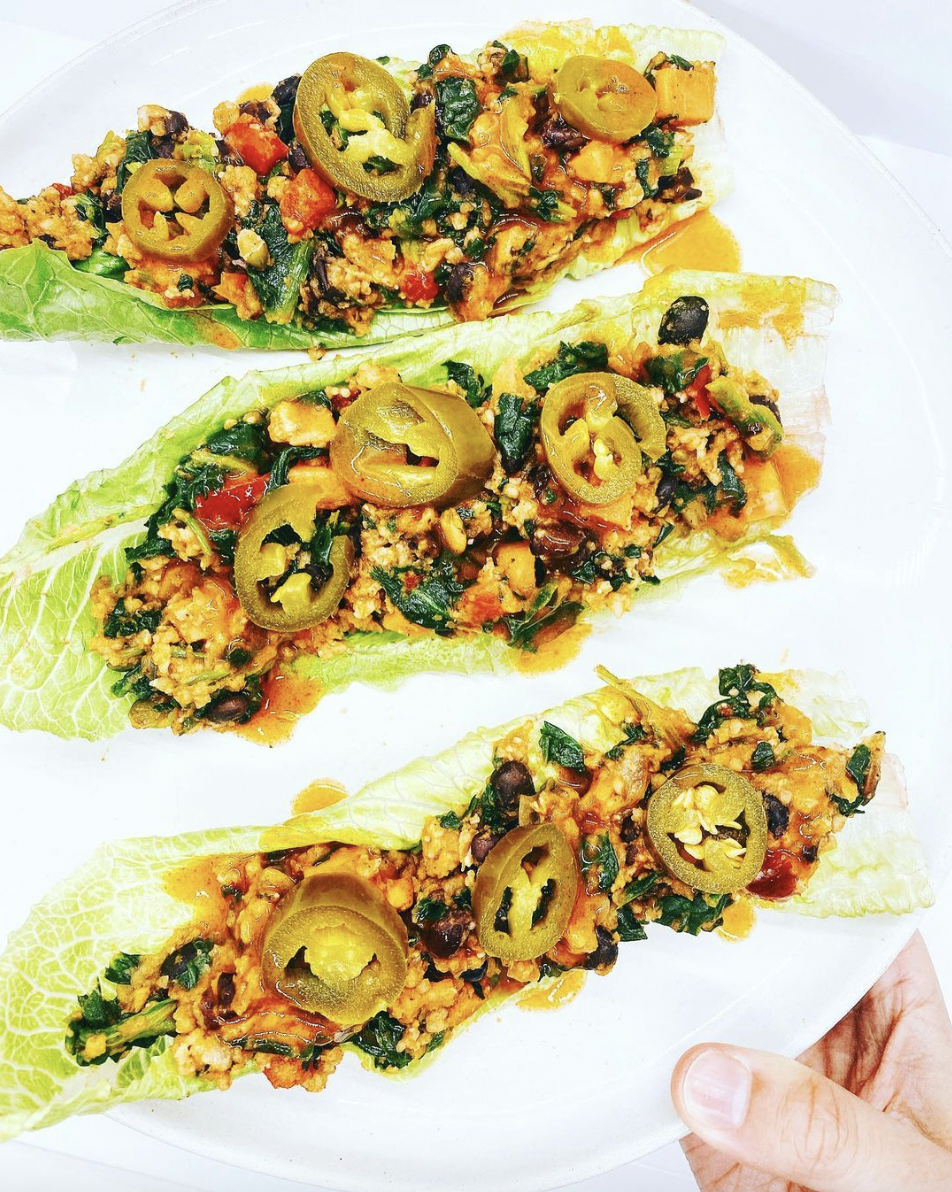 Courtesy of @lesswithlaur, these lettuce wraps will take your Brown Rice Taco Bowl to the next level! Add jalapeños for an extra kick!