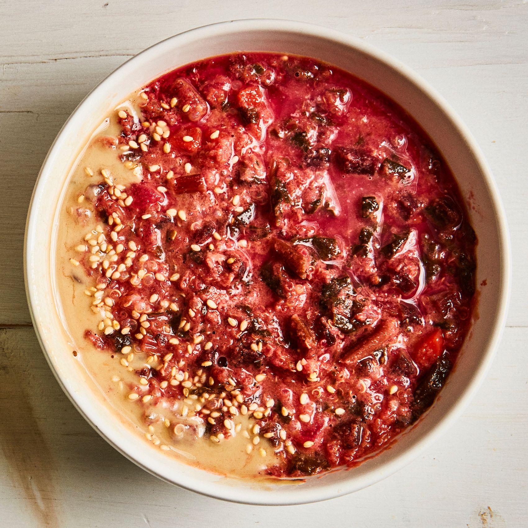 - Combine in a bowl and mix the lemon juice, tahini, chili powder and a splash of water. Add to the pot.